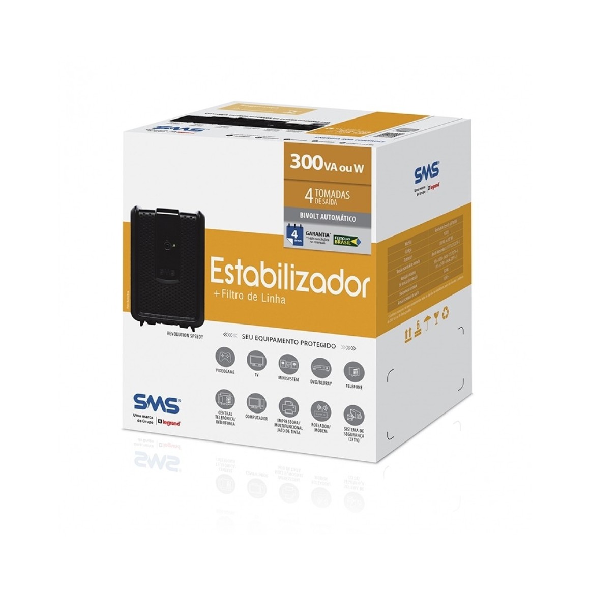 ESTABILIZADOR SMS REVOLUTION SPEEDY 300VA BIV 4 TOMADAS