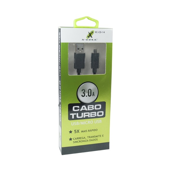 Cabo USB Turbo Micro USB 3.0a V8 2Metros X-CELL Preto - XC-CD-14