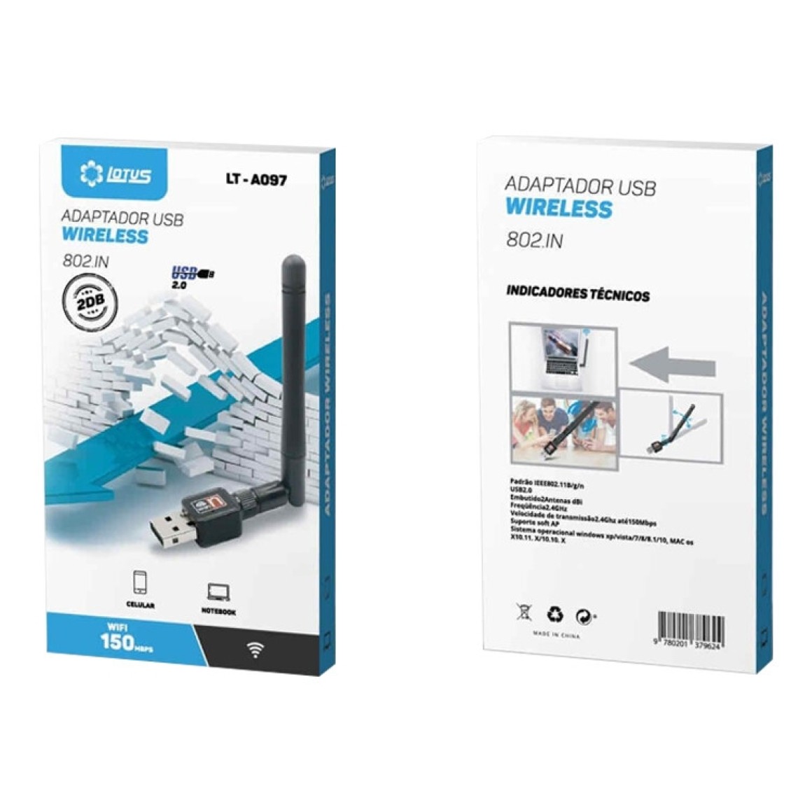 ADAPTADOR ANTENA WIRELESS USB WIFI 150MBPS SEM FIO LAN LOTUS LT-A097 AD0116LT