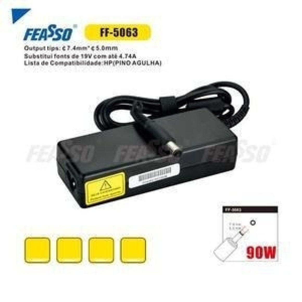 FONTE FF-5063 P/ NOTEBOOK HP, SAMSUNG (PINO PRETO) 90W 19V 4.74A PLUG7,4X5,0 FEASSO