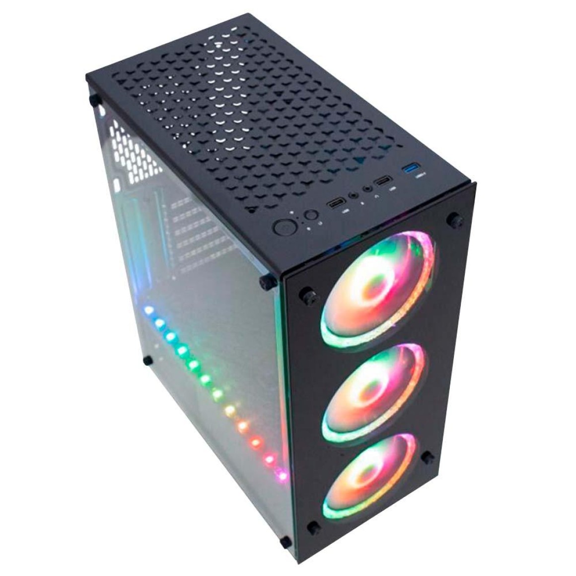 -Gabinete Gamer Kmex Cg-a1tj Atlantis Star Micro Atx/ Atx/ Itx Sem Fonte Preto