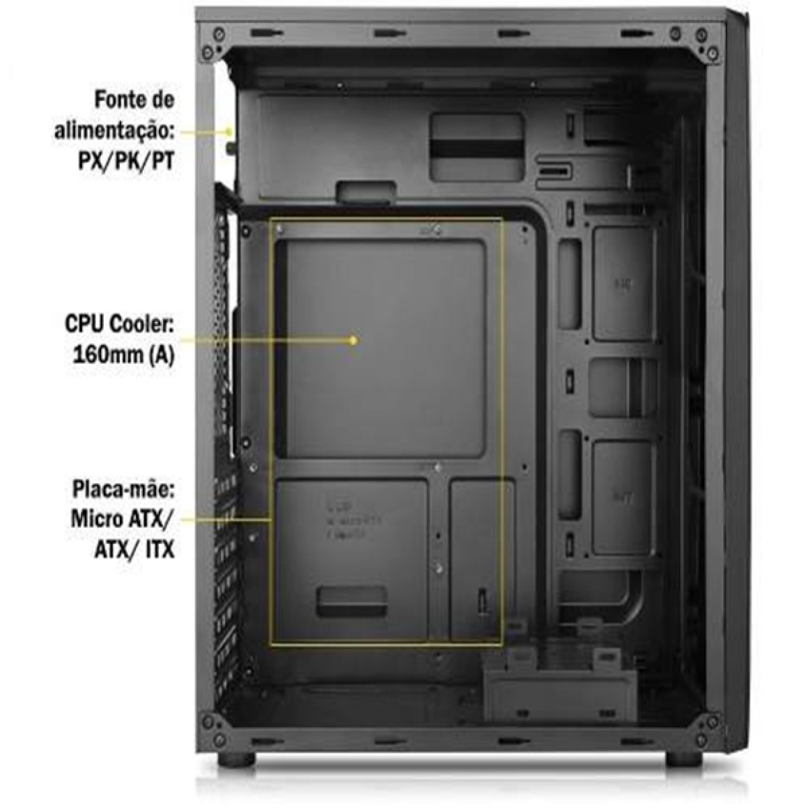 - Ventilação Traseira: aceita 1 cooler de 12 x 12 cm (não acompanha cooler
