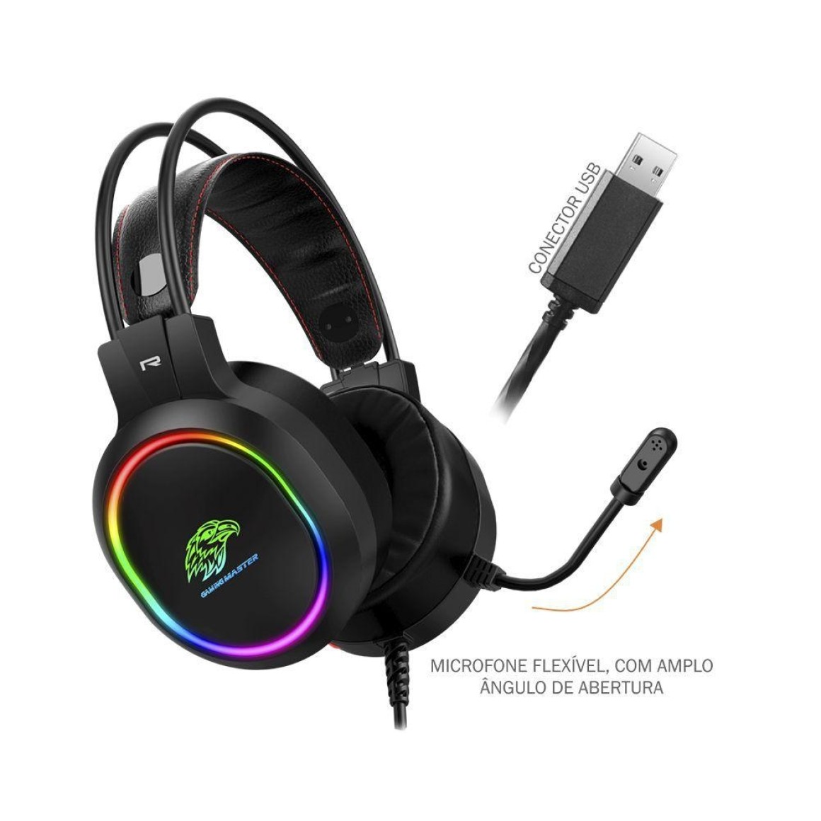 HEADSET GAMER KMEX AR43 7.1 USB COM LED RGB PRETO AR43000S71PPB0X
