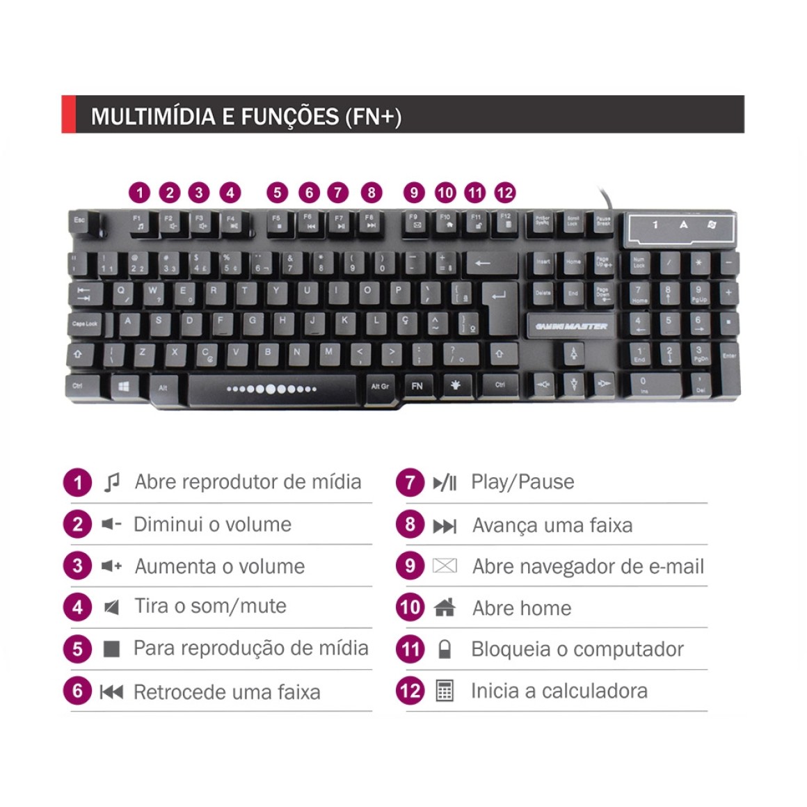 Teclado gamer com funções multimídia