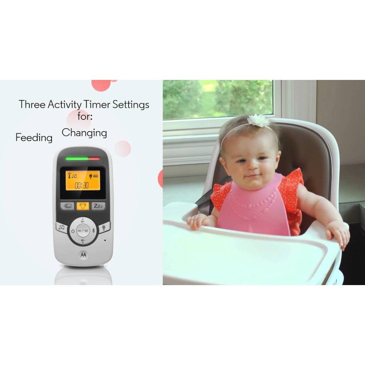 O monitor de áudio digital Timer MBP161 da Motorola usa a tecnologia sem interferência DECT, que oferece uma conexão sem fio forte, o que significa melhor alcance para garantir que você sempre possa ouvir seu bebê. Ele também possui três temporizadores úteis para ajudá-lo a lembrar quando é hora de alimentar seu bebê, trocar sua fralda ou quando é hora de tirar uma soneca.