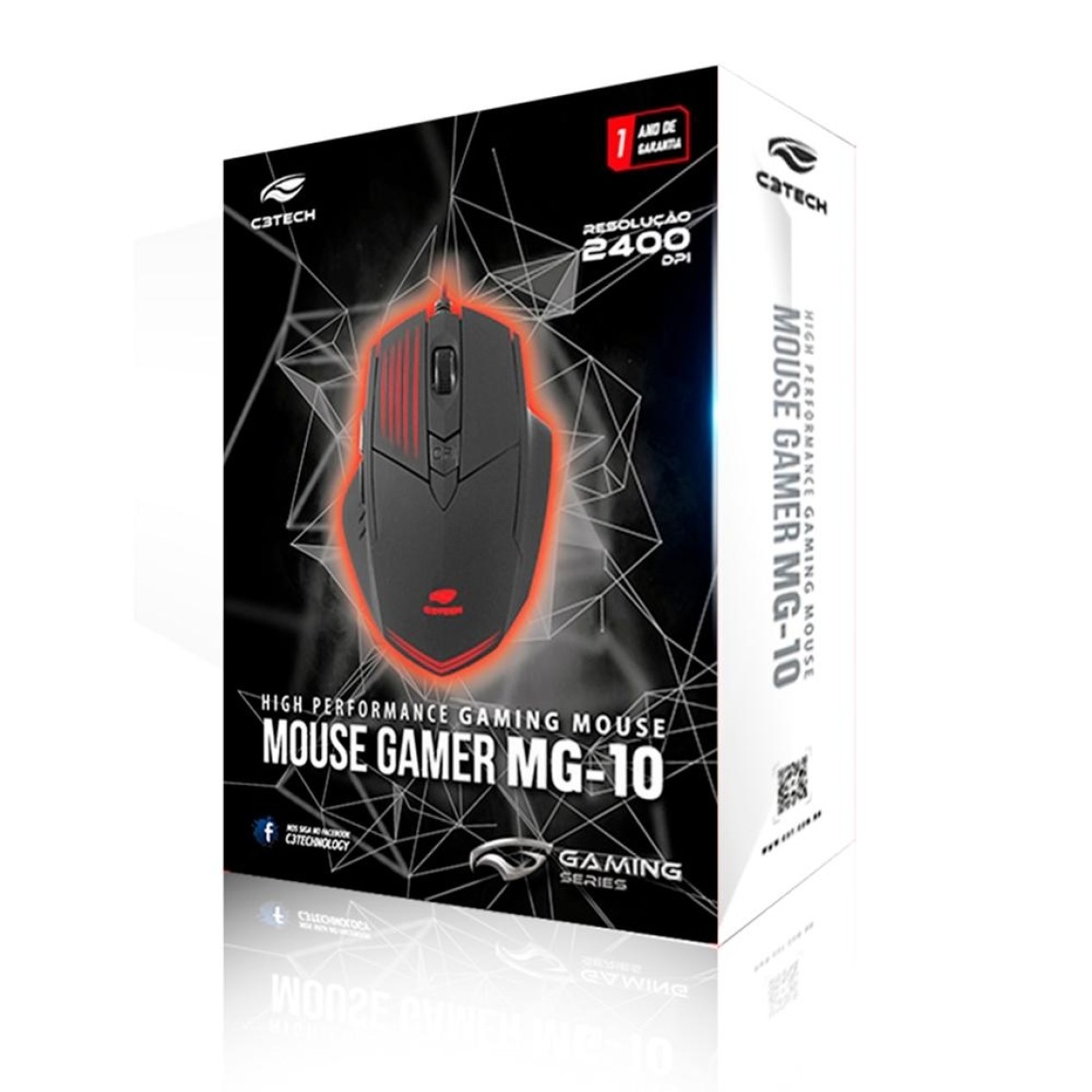 O Mouse Gamer MG-10BK, possui alta tecnologia e design ergonomico, proporcionando otima pegada. Com 6 botoes, sensor optico de ate 2400dpi com niveis variados indicados pelas cores do led.
