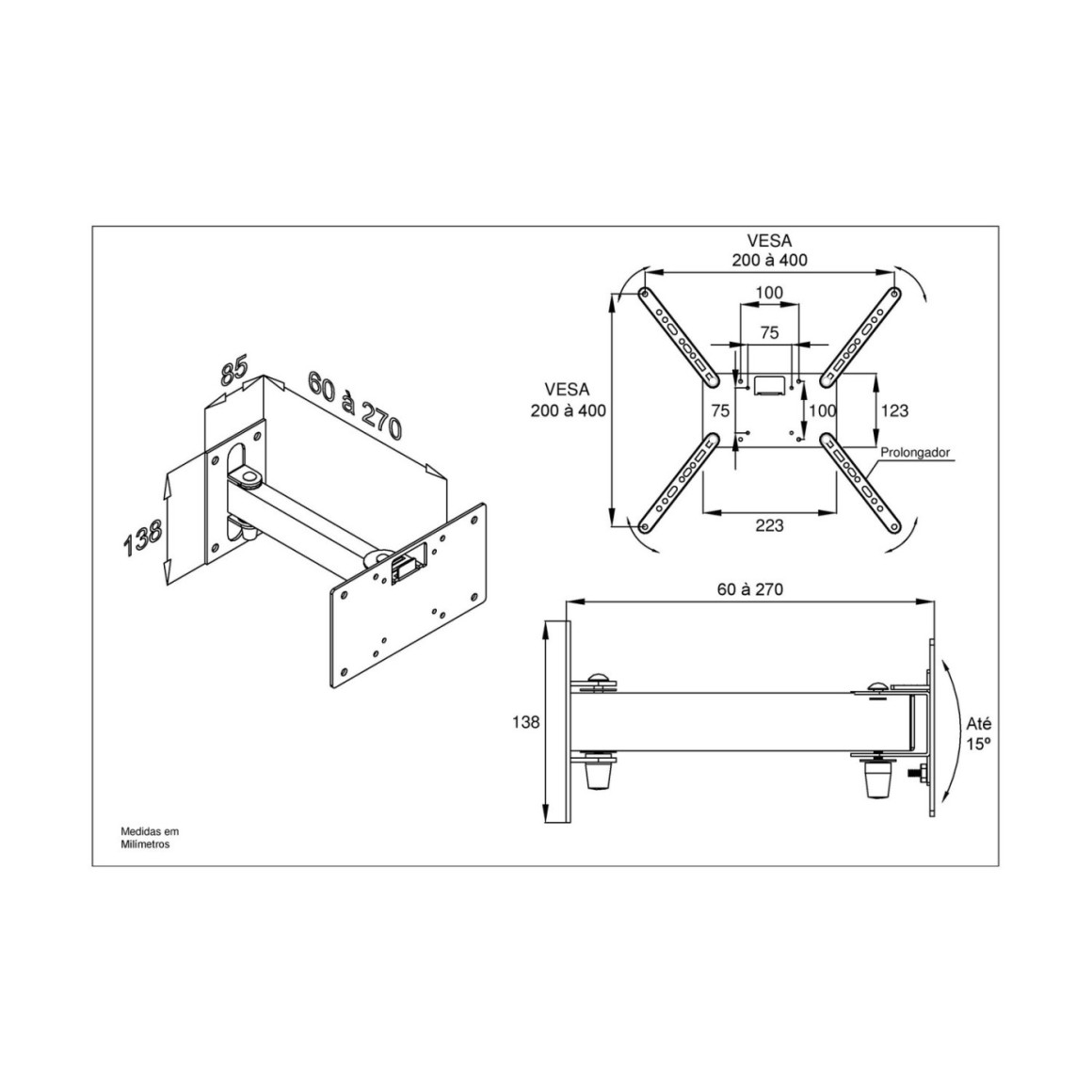 DIFERENCIAIS DO PRODUTO: 3 níveis de inclinação; Possui ajuste de nível; Fácil instalação; Qualidade MULTIVISÃO.