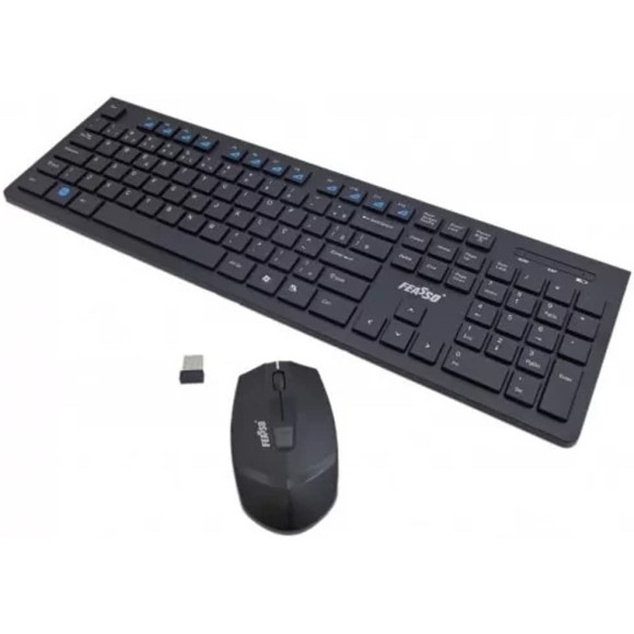 Feasso Teclado e Mouse Wireless 2.4GHz USB -